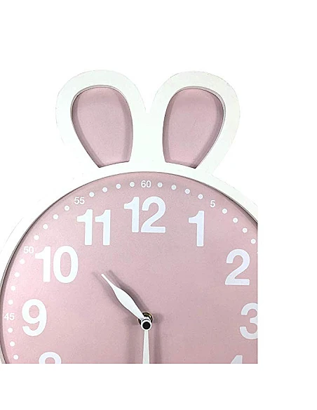 Smart og bedårende ur til væggen på baby eller børneværelset der giver barnet mulighed for at lære og se klokken på en genkendelig, tryg og sjov måde. Væguret er dekorativt med søde kanin ører der stikker op i luften over klokken. Uret er batteri drevet og giver et flot udtryk i sarte farve.