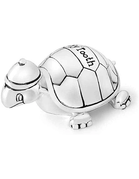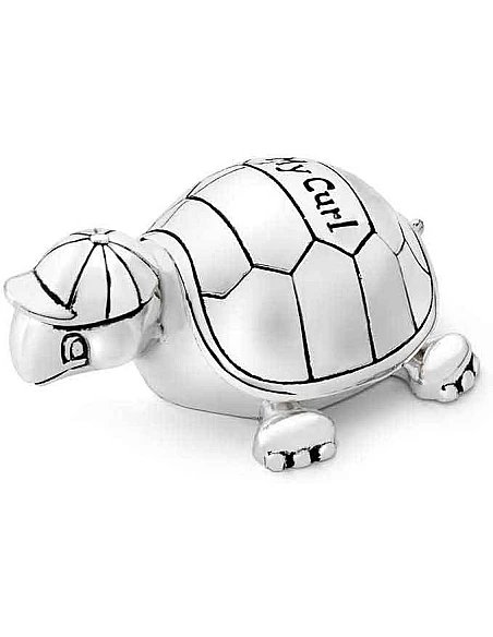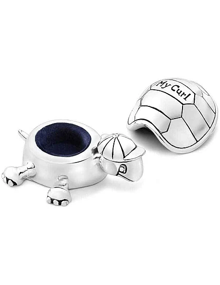 2 søde små skildpadder i forsølvet metal og stof indeni. Sættet er beregnet til at gemme den første hårtot eller krølle og mælketænder. En betænksom og dekorativ gave til den lille nye i familien. Skildpadderne er bedårende og dekorative at have stående fremme på børne og baby værelset.