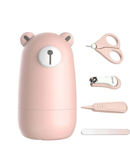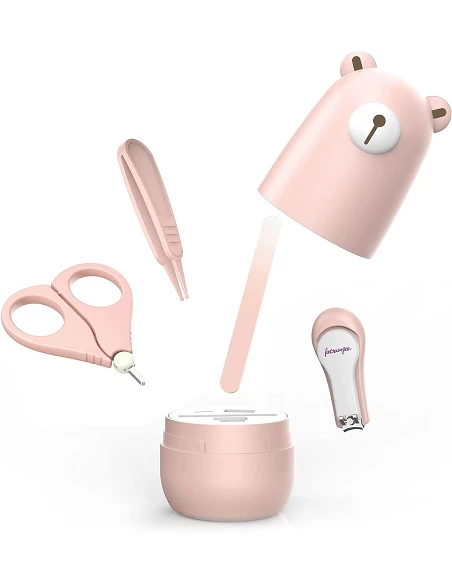 Babyplejesæt med Negleklipper, Neglesaks, Neglefil og Pincet - Lyserød