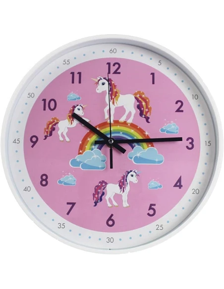 Væguret har et smukt Enhjørning motiv og farverigt design, der fanger børns fantasi og