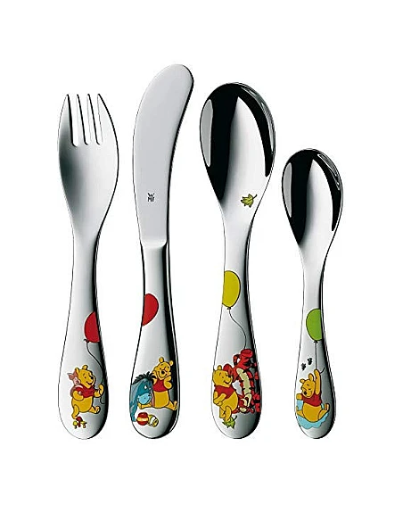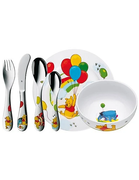 WMFErgonomisk designet bestik og tallerkner til børn i flot Peter Plys og venner design. Sættet kommer i formstabilt design i Cromargan® rustfrit stål og bløde runde detaljer. Perfekt til at gøre måltidet til en sjov og god oplevelse.