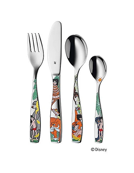 WMFBestiksæt til børn i farvestrålende design. Barnet kan leve sig ind i den eventyrlige verden af Junglebogen og starte hvert måltid med glæde. Spise sættet består af bestiksæt med 4 dele, skål og tallerken i kvalitets porcelæn. Bestiksættet kan graveres med barnets navn for et personligt præg og særlig gave.