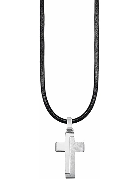 Halskæden der passer til alle mænd i uanset alder. Den enkle tynde lædersnor giver et stærkt udtryk op til det moderne vedhæng i kors design. Selve kors vedhænget kommer med flotte design detaljer hvor den ene del er finpudset, og den anden rå og rustik. Et flot stærkt udtryk til den moderne mand.