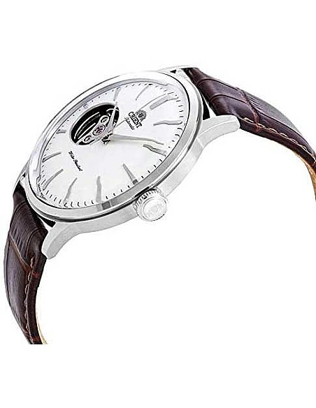 OrientOrient Bambino herreur fra det ikoniske japanske brand. Uret er en del af deres classic kollektion og byder på en hvid grå urskive med udsigt til urværket samt en lækker blød og behagelig læderrem som både sidder sikkert og er komfortabelt. Armbåndsuret har et automatisk urværk hvis funktioner som manuel optræk og sekund stop er efterspurgt af fans over hele verdenen.