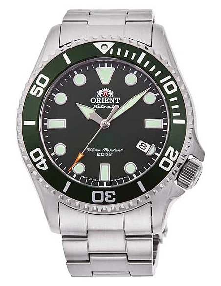 OrientOrient New Triton RA-AC0K02E10B med grøn lynette og urskive. Herreuret kommer med japansk udviklet og fremstillet automatisk urværk med ca. 40 timers reserve og har funktioner som sekund stop, manuelt optræk og dato visning. Et funktionelt design som både er alsidigt og sportsligt.