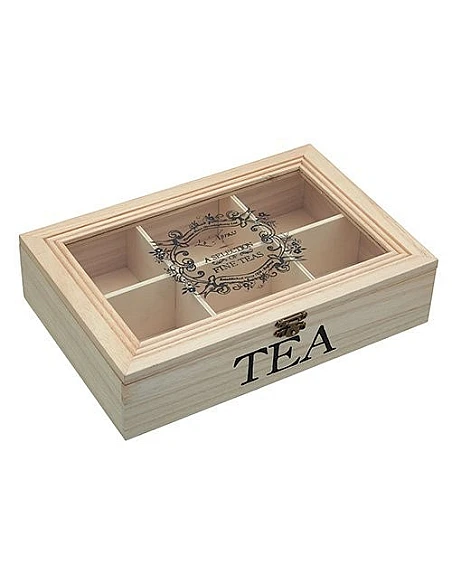 Flot opbevaringsæske med 6 opdelingsrums til individuelle tebreve i naturligt ubehandlet træ i et rustikt smukt nordisk design. Lad dine gæster vælge deres favorit te fra en flot te opbevaringsæske som er et flot tilbehør at have stående fremme, eller nyd selv en kop varm te og hygge i vintermånederne.