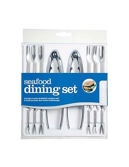 Et komplet seafood bestik sæt når havets fristelser skal på bordet. Bestik sættet er perfekt til brug af hummer, krabber m.v. Sættet indeholder 2 x fiskeknækker + 6 gafler. Bestik sættet er praktisk såvel som funktionelt og kan efter brug vaskes i opvaskermaskinen.