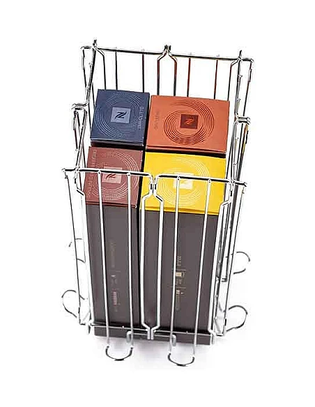Smart og praktisk opbevarings karrusel til Nespresso Vertuo kaffe kapsler. Standen kan rumme op til 80 kaffe kapsler og med 360 graders dreje funktionen gør det let at vælge favorit kaffen hurtigt og let. Standen holder orden på kapsler og giver et dekorativt design element til køkken, kontor eller butik.