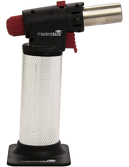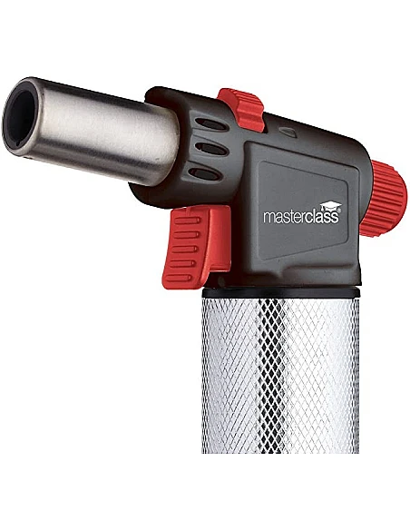 Gasbrænderen Masterclass kommer med kraftig flamme der kan regulres, og kan let genopfyldes når den løber tør. Flot design med anti-slip metal cover der gør det let at håndterer gasbrænderen over retterne der skal flamberes.