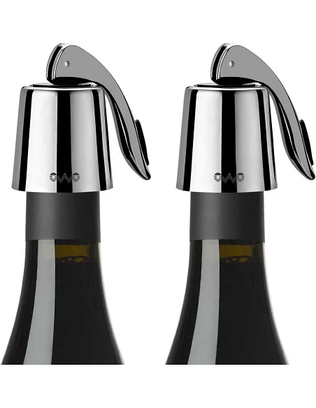 Det elegante vinprop sæt til vinelskere. Disse stilfulde vinpropper i rustfrit stål sikrer, at din vin holder sig frisk i op til 15 dage. De er nemme at sætte på og har et elegant, moderne design, der passer til enhver vinflaske. Sikker at bruge og lavet af kvalitetsmaterialer, ideel til både rød og hvid vin.