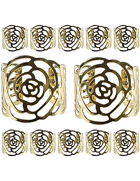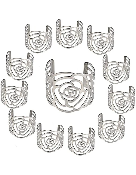Flotte Rose Servietringe - 12 Stk. - Sølv Eller Guld
