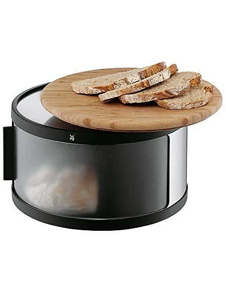 WMFPerfekt opbevaring til brød i denne flotte opbevaringskasse fra WMF. Brødtommen sørger for at bagværk og brød ikke bliver for tørt eller for fugtigt. Designet med en skydedør og aftageligt bambus skærebræt på toppen af brødtrommen. Et flot køkkenredskab til det moderne køkken.