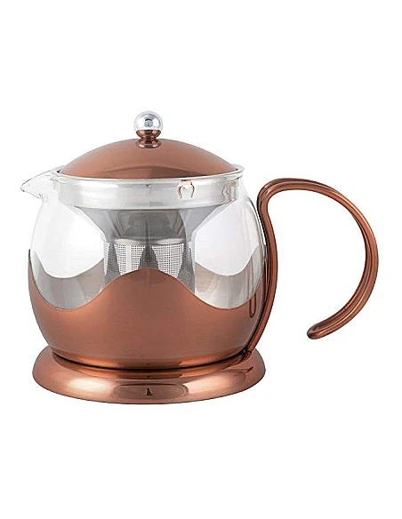 En dekorativ tekande i et klassisk funktionelt design. Den flotte tekande er fremstillet i varmeresistent glas og rustfrit stål og fuldendt med et kobber look. Tekanden serverer 4 kopper friskbrygget te.