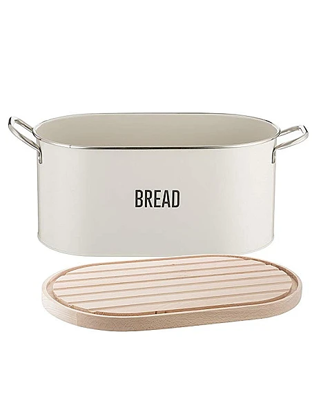 Vintage Design Brødkasse Inkl. Skærebræt Låg – Creme