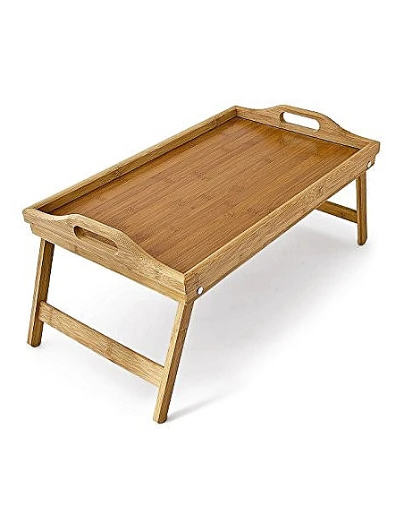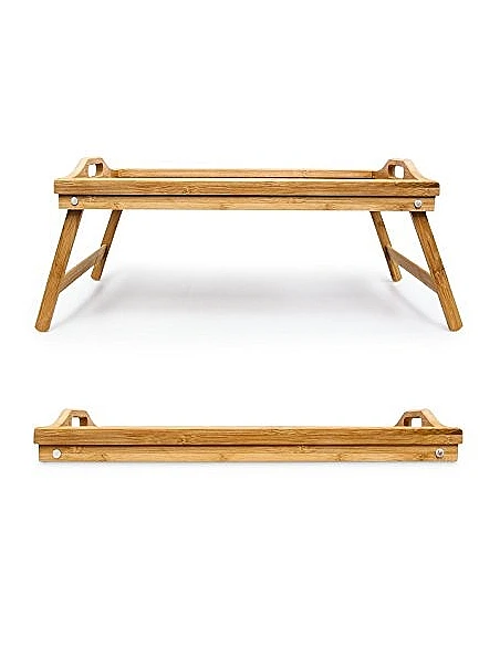 Praktisk bakkebord med forhøjet kant og sammenklappelige ben. Bakkebordet er fremstillet i 100% naturligt bambus, og let at rengøre efter brug. Anvend det som serveringsbakke når der skal hygges i sofaen, overrask med en romantisk morgenmad på sengen eller når den syge med forkølelse skal plejes.