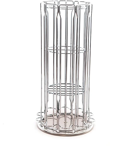 En rummelig opbevaringsstand til Nespresso kaffe kapsler i drejbart og stilrent design. Standen kan dreje 360 grader og har opbevarings plads i midten af standen til ekstra kaffe rør. Designet kommer med krom finish og er pladssparende i det lille køkken og holder god orden i dine favorit Nespresso kaffe kapsler.