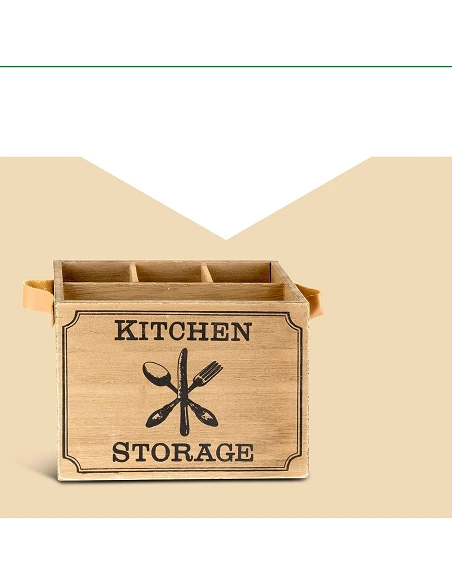 Den er ideel til opbevaring af køkkenredskaber eller som dekorativt element. Denne høj kvalitets trækasse måler 17 x 12,5 x 12,5 cm og er den perfekte løsning til at organisere dit køkken.
