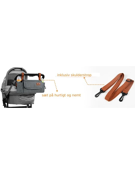 Til barnevogn eller f.eks. som skuldertaske |