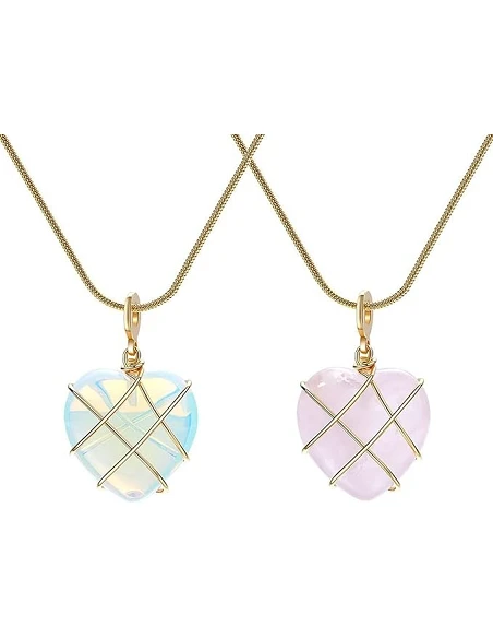 Denne unikke halskæde med hjerteformet vedhæng i rosenkvarts er et symbol på kærlighed, sundhed og rigdom. Hver pakke indeholder to halskæder, der stråler i lyseblå og lyserød. Fremstillet af opal og legering, er halskæden skinnende og behagelig at bære, perfekt til hverdag og specielle anledninger.